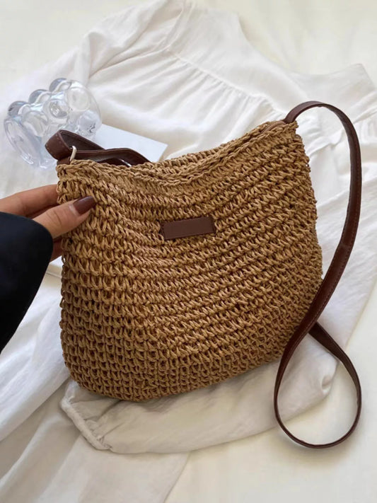 Straw Woven Adjustable Strap Crossbody Bag
