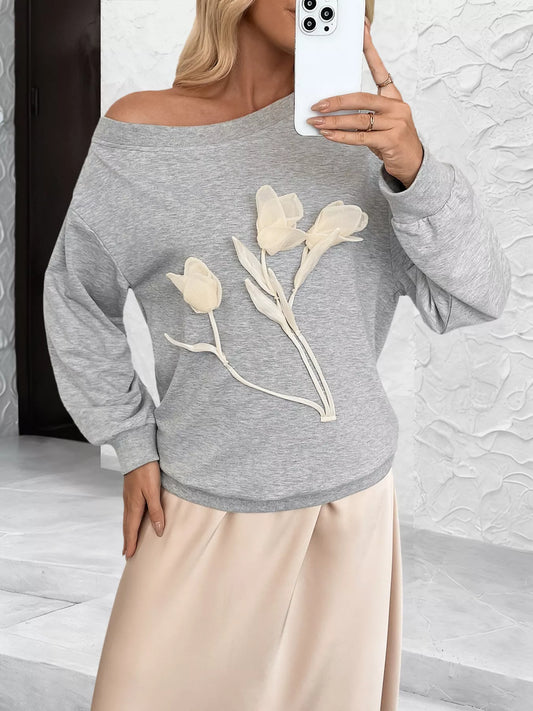 Bow Round Neck Dropped Shoulder Sweatshirt