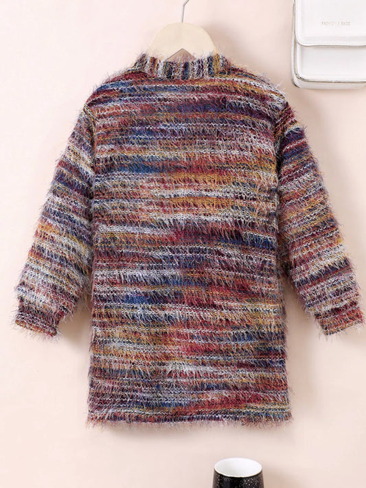 Children's Christmas Reindeer Applique Striped Long Sleeve Dress