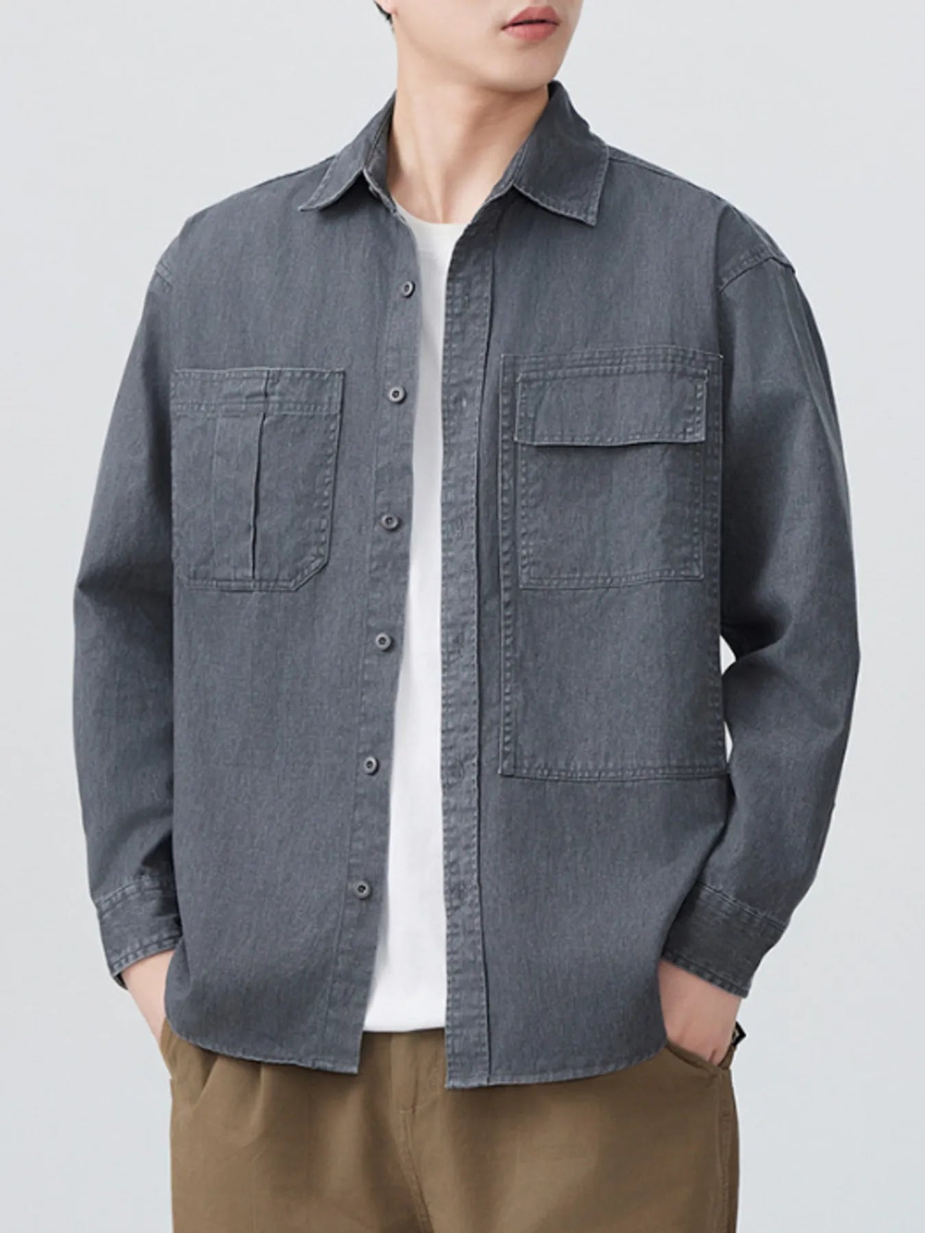 - Men's Plus Size Button Up Long Sleeve Denim Shirt