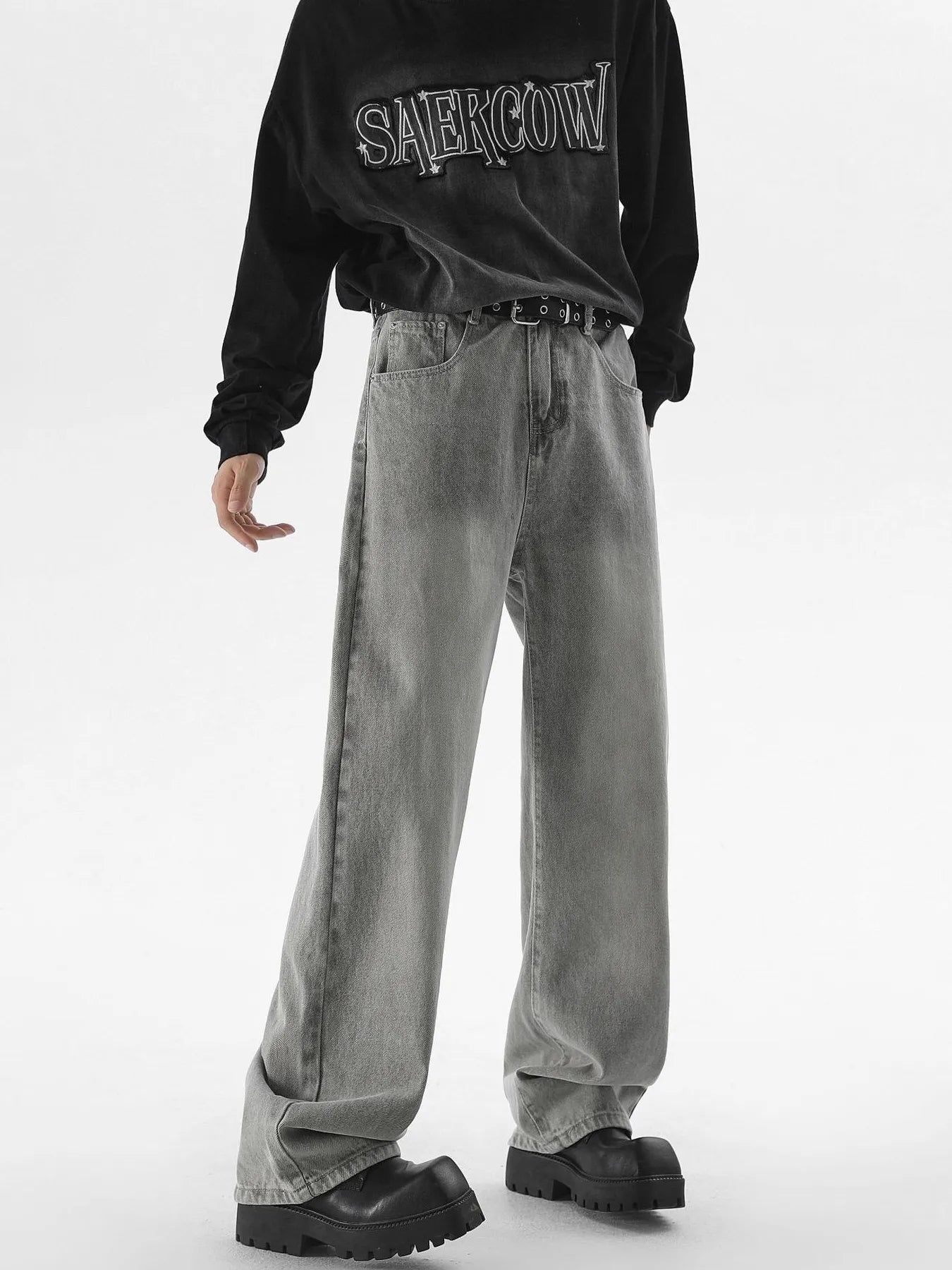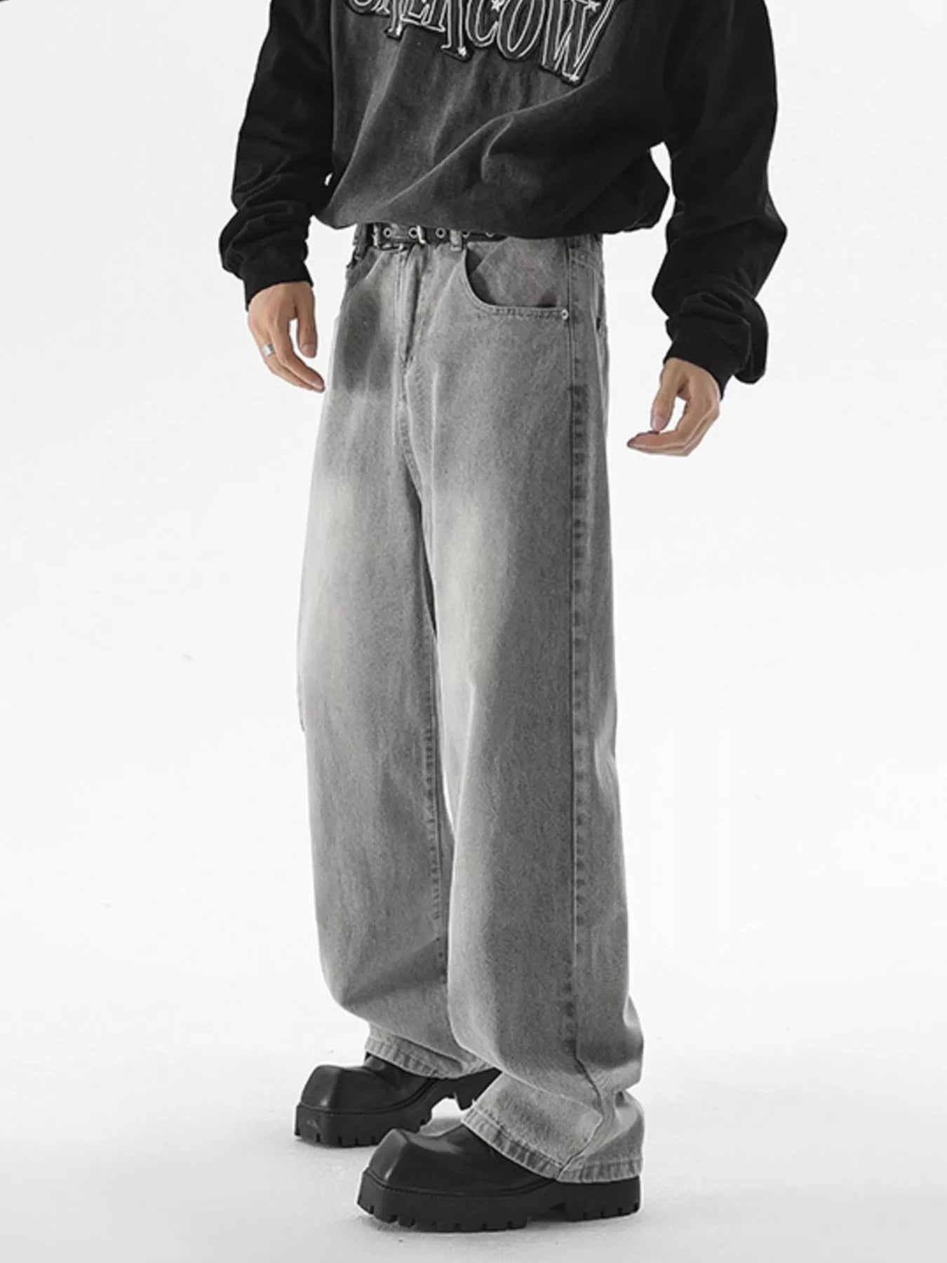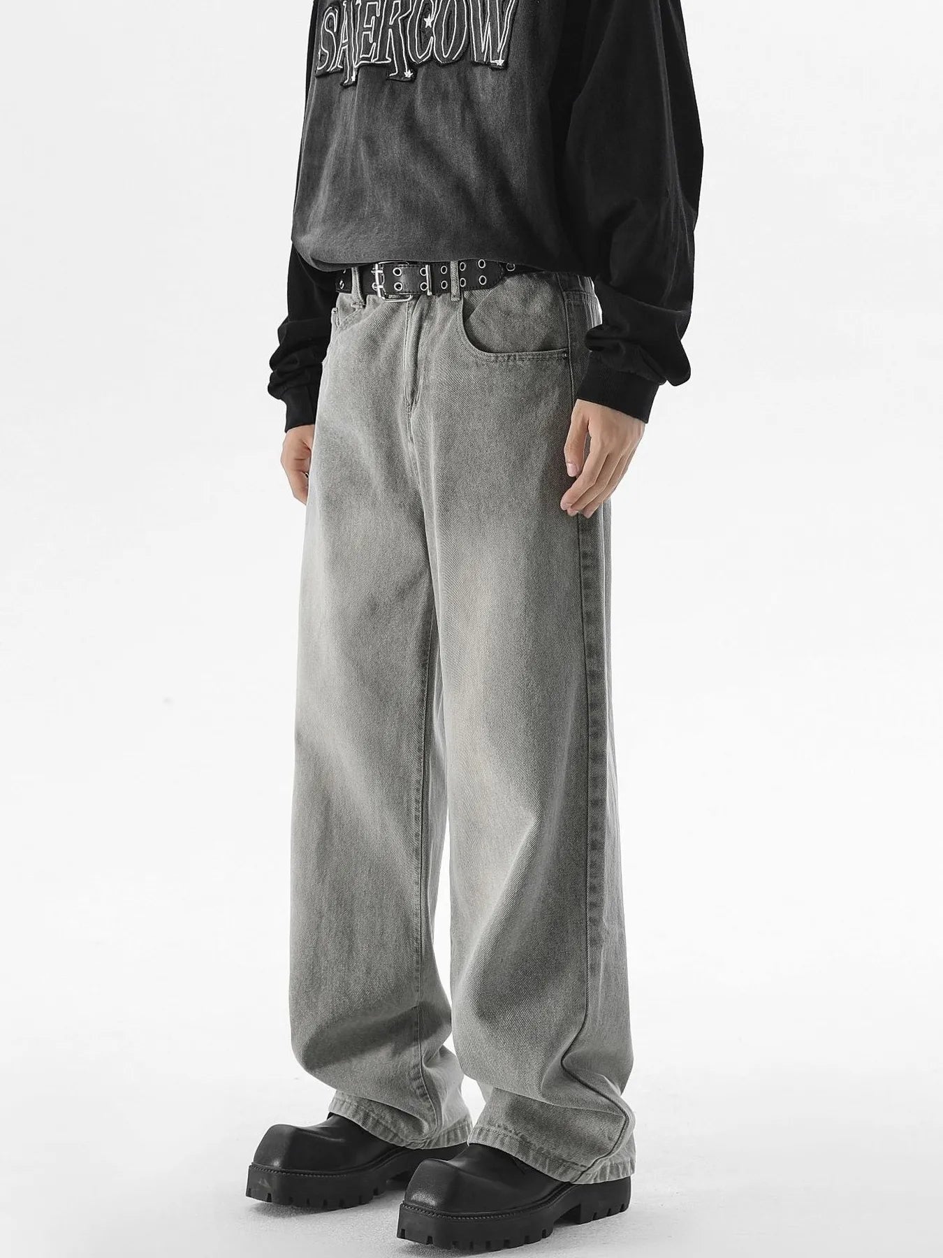 Men's Distressed Wide Leg Vintage Wash Jeans