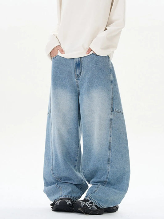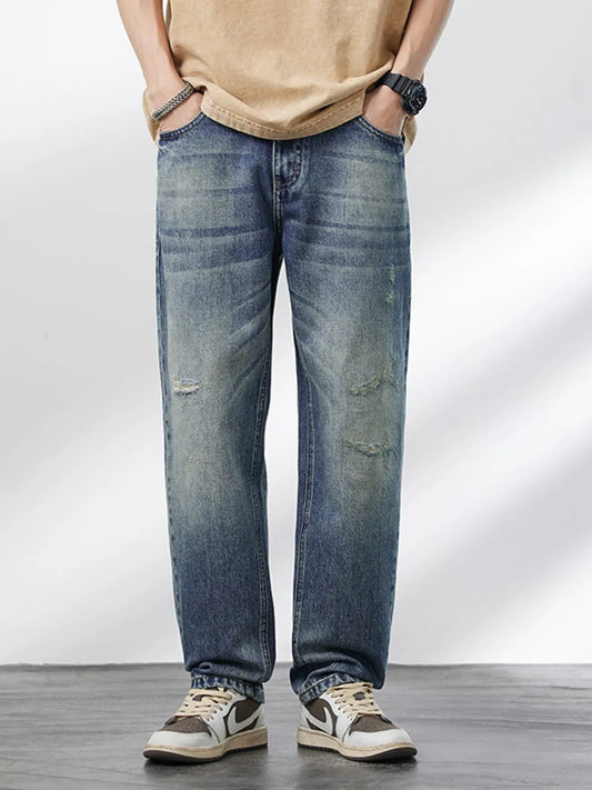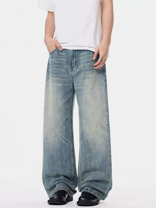 Men's Plus Size Vintage Wash Wide Leg Jeans