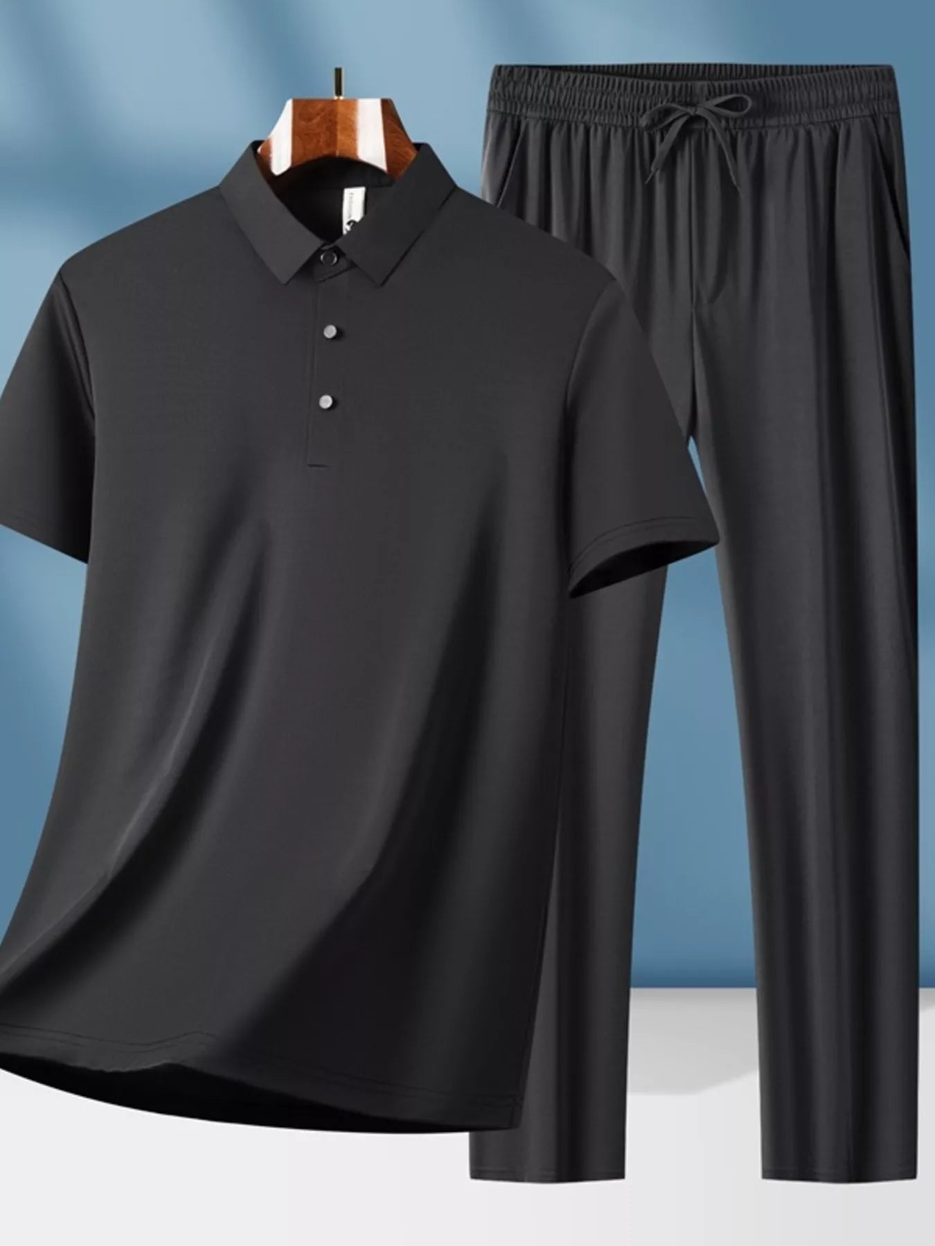 - Men's Plus Size Button Detail Short Sleeve Top and Pants Set