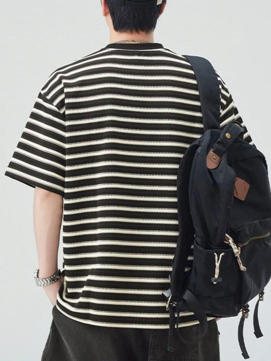Men's Plus Size Striped Round Neck Half Sleeve T-Shirt