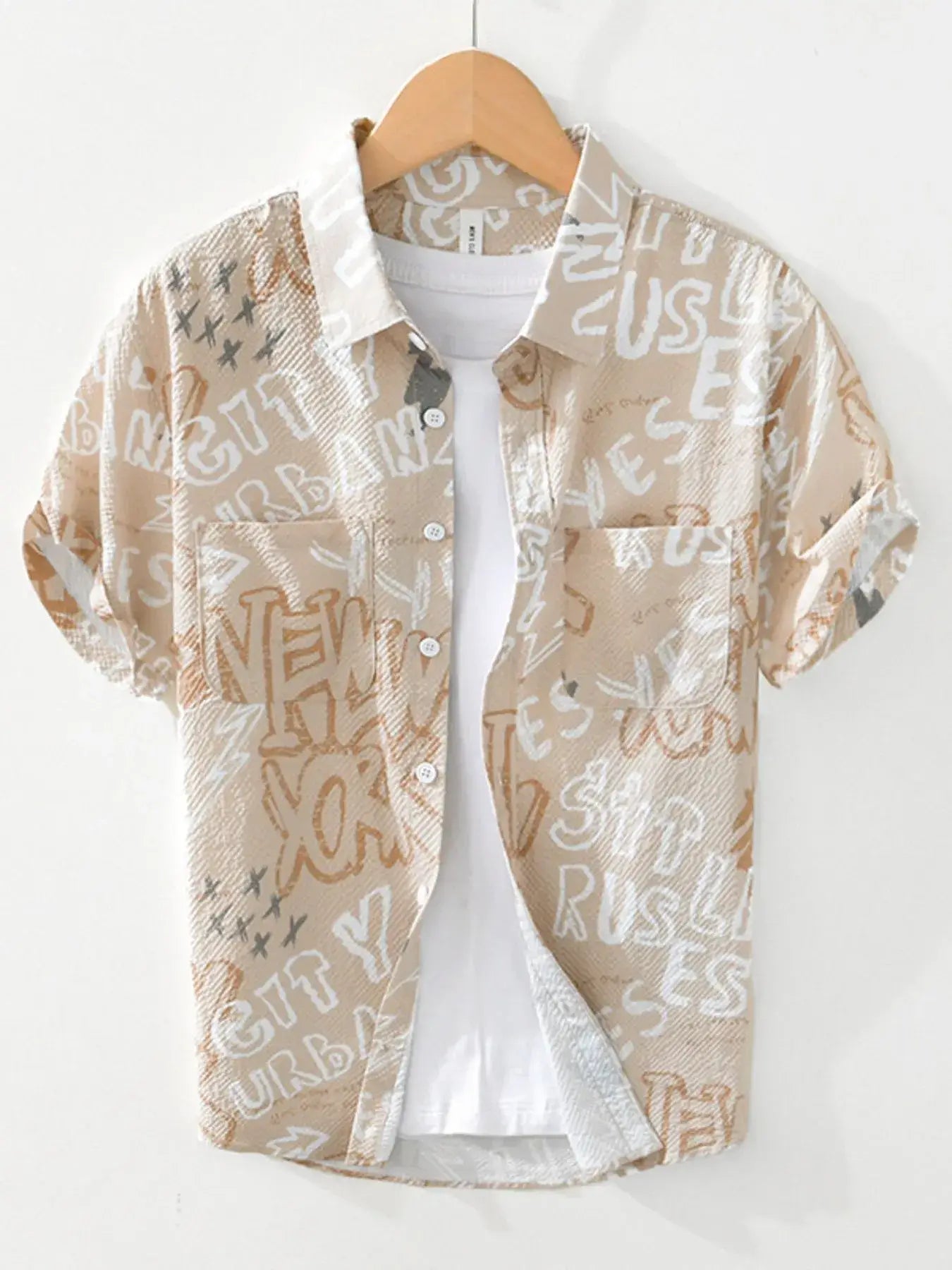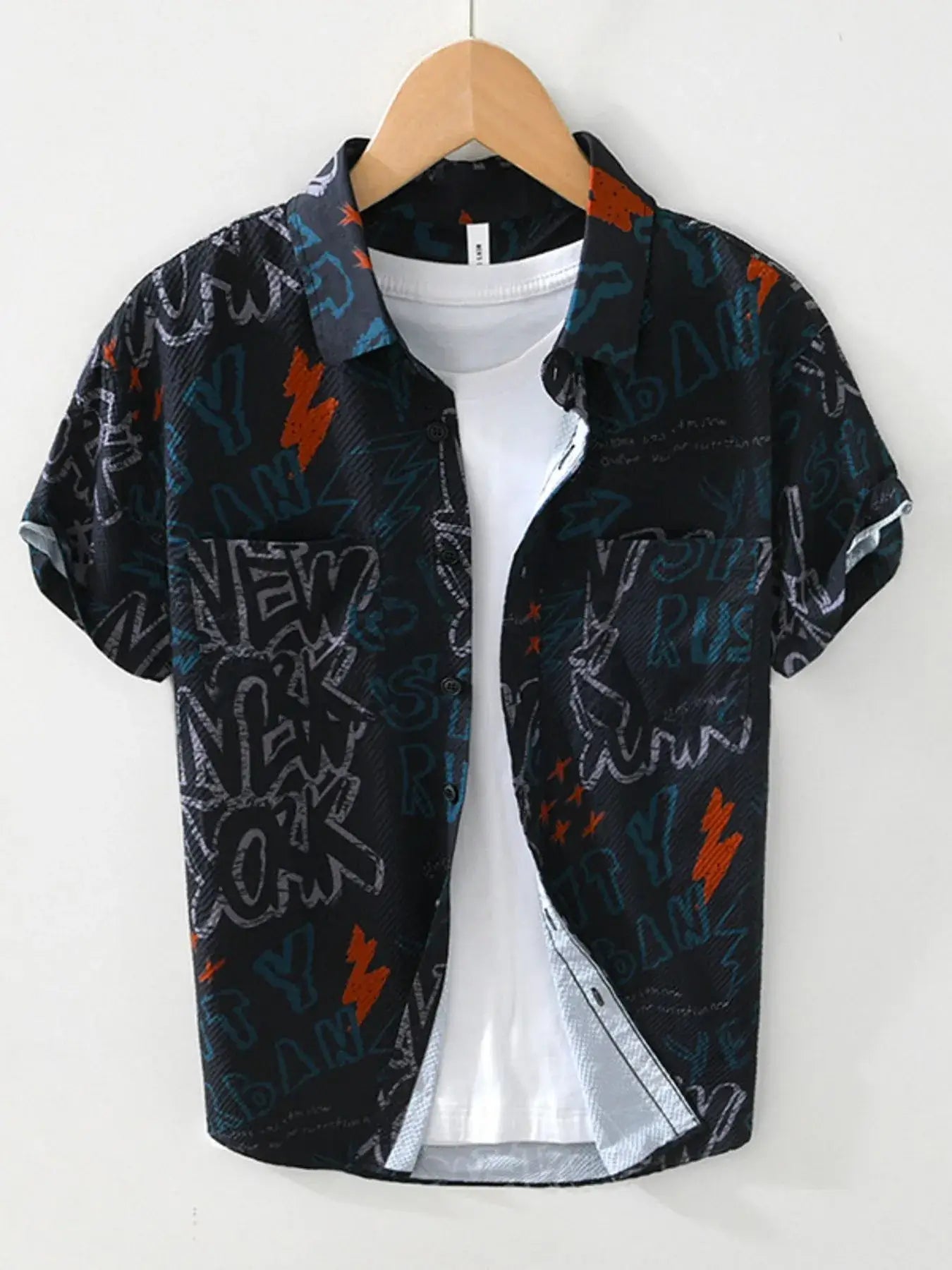 - Men's Plus Size Printed Button Up Short Sleeve Shirt