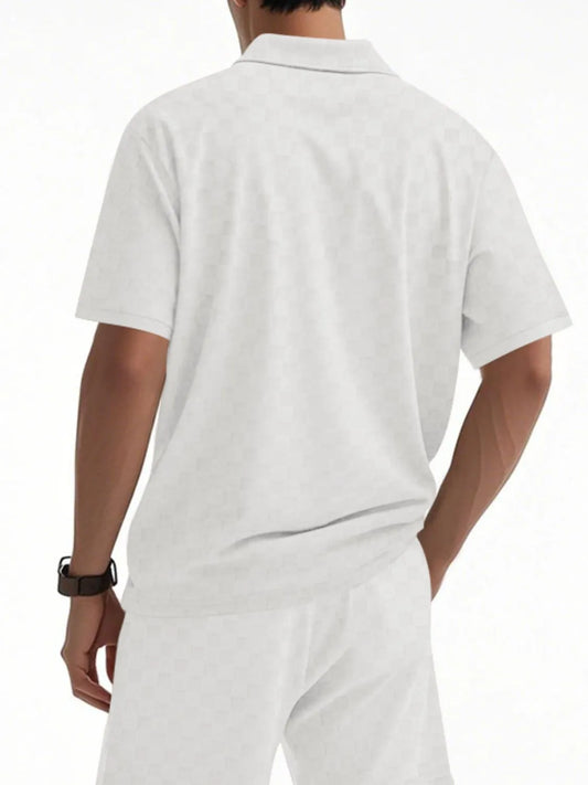 Men's Plus Size Printed Button Up Shirt and Shorts Set