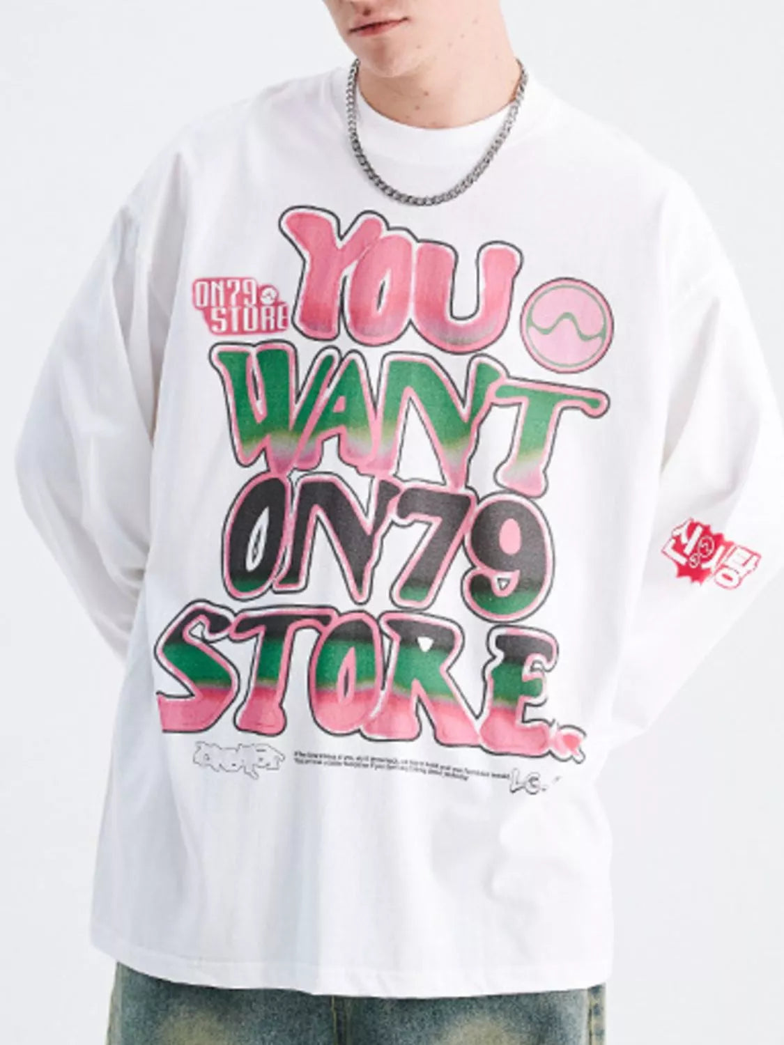 - Men's Graphic Round Neck Long Sleeve T-Shirt