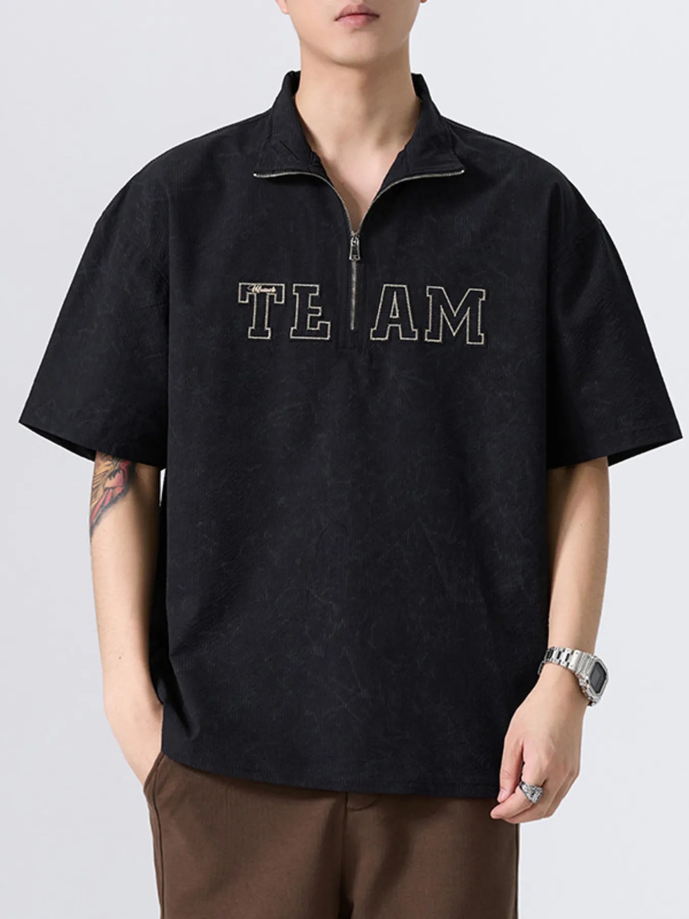 - Men's Plus Size Quarter Zip Short Sleeve Polo