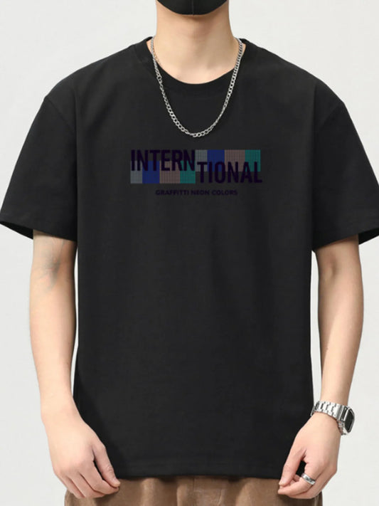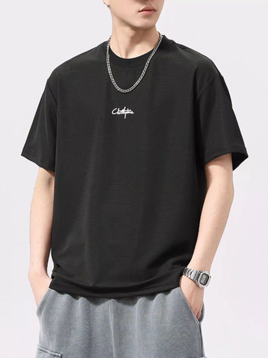 Men's Letter Round Neck Half Sleeve T-Shirt