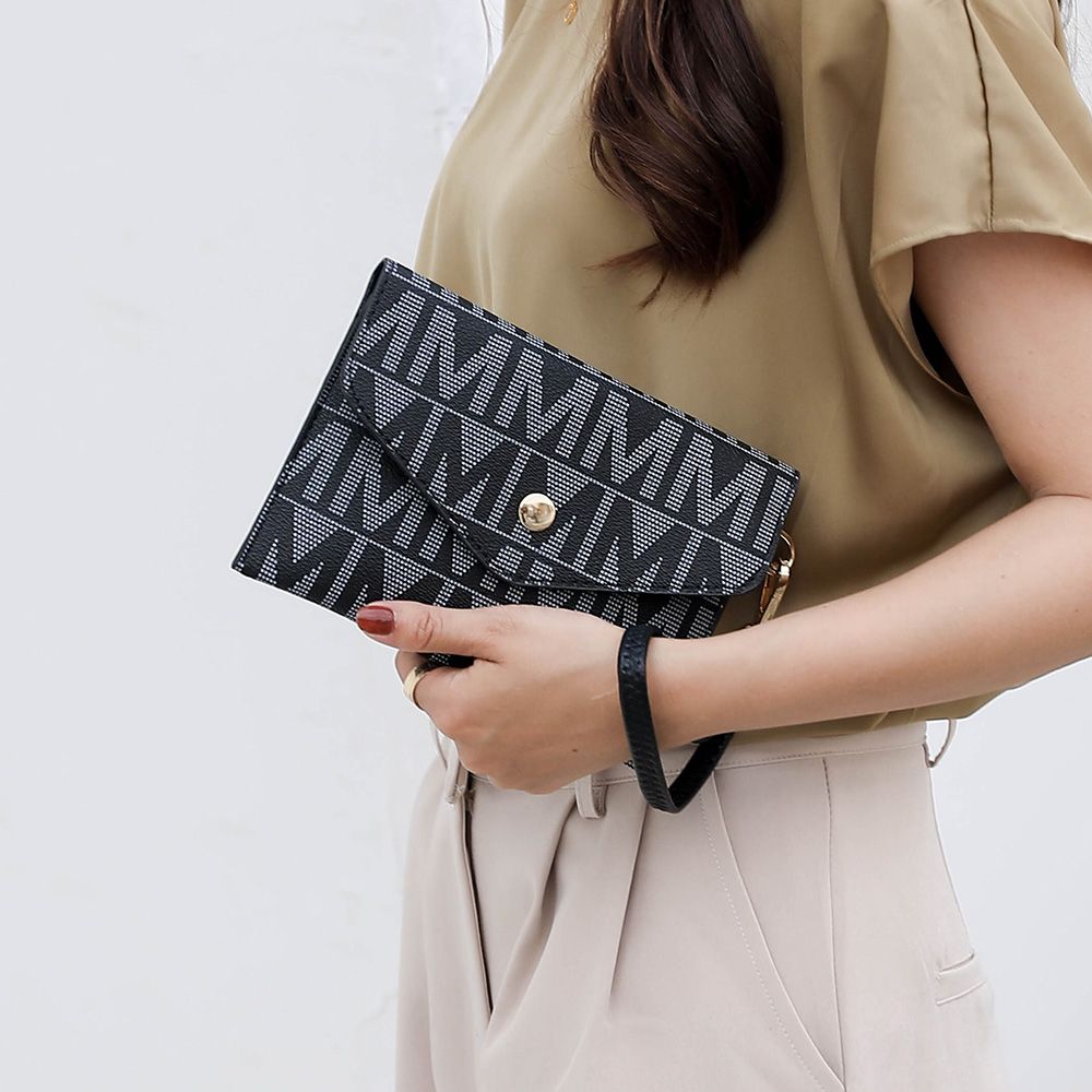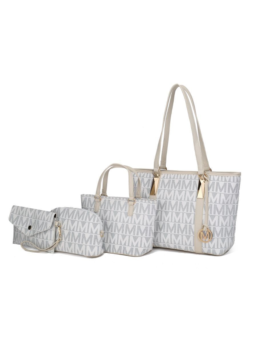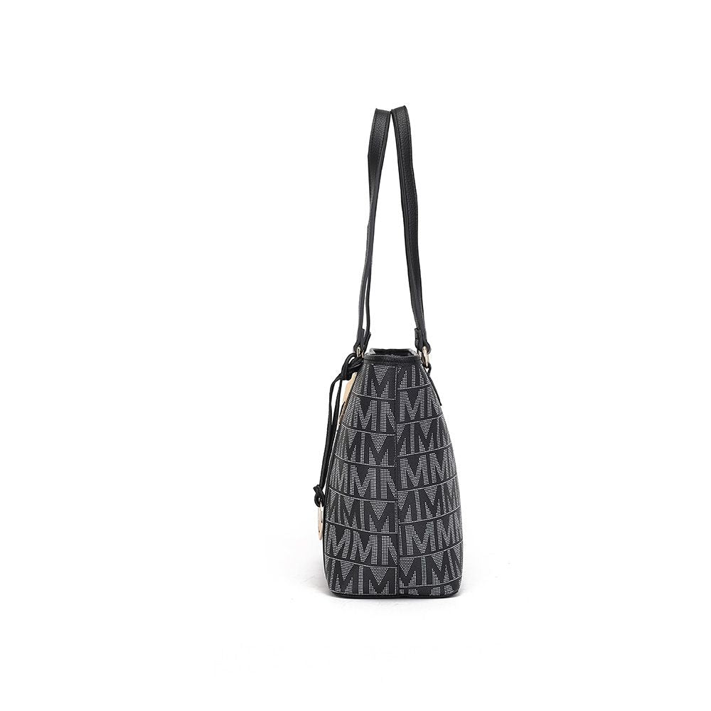 Elevate your everyday style with the Marimar M Signature Tote by MKF Collection, a sophisticated and spacious accessory crafted from high-quality vegan leather. Its embossed MKF monogram exudes timeless elegance, while the versatile design blends luxury with practicality. The well-organized interior features a secure top zipper closure, a wall-zippered pocket, slip pockets, and ample space to carry your tablet, planner, or small laptop. An exterior back zippered pocket adds convenience, while sturdy double handles and a detachable, adjustable shoulder strap ensure comfortable carrying options. The set includes a matching mini tote for makeup or accessories and a wristlet for cards and cash, making it perfect for work, errands, or a night out.