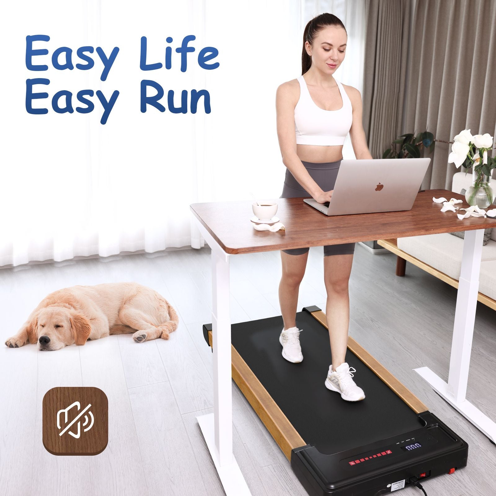 Installation-free & Super Quiet Motor : This walking pad treadmill arrives with fully assembled already which can be used directly after unboxing.Considering that most people are using the compact treadmill at home, we designed a high-powered quiet 2.5HP motor, a shock-absorbing running belt made of PVC, fiber and cotton yarn, and 4 shock-absorbing foot pads that help reduce noise and improve stability while running.