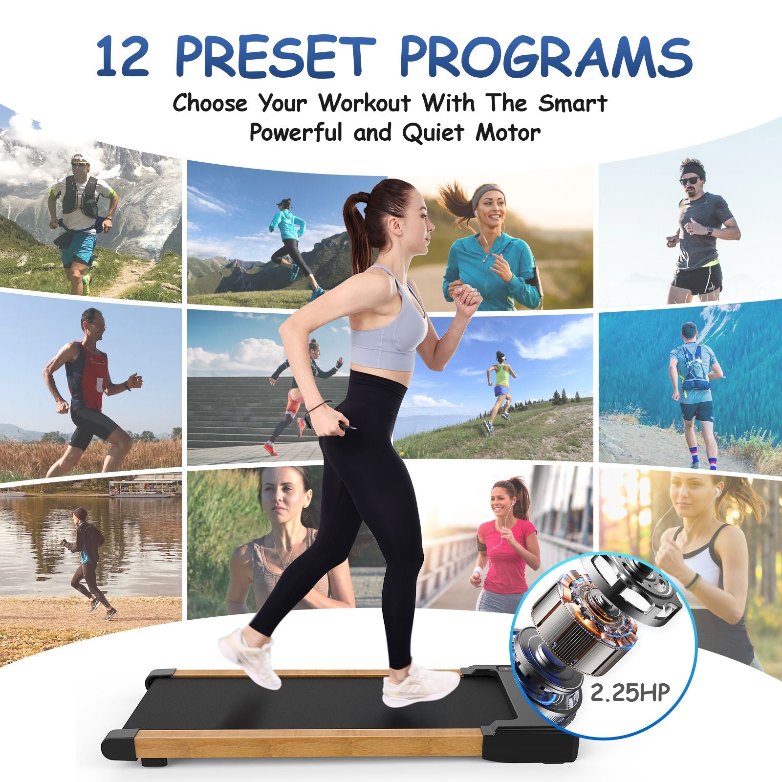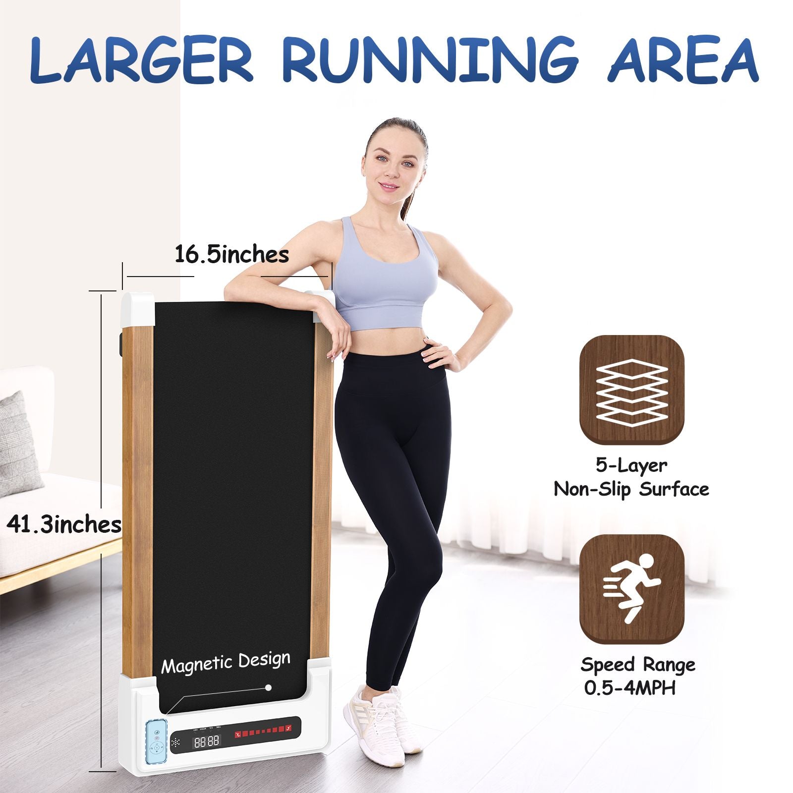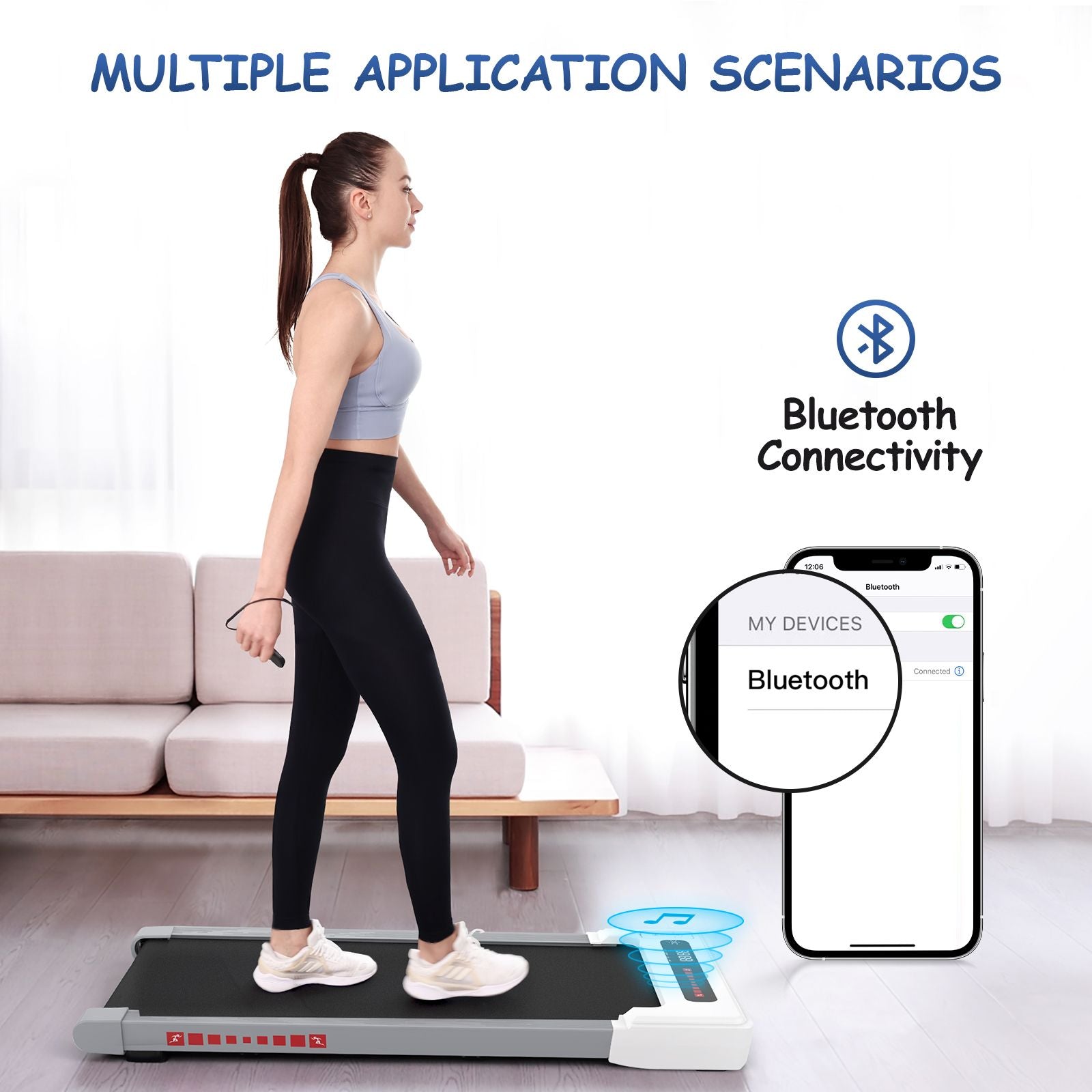 12 Preset Programs & Bluetooth Speaker:To increase the fun of working out at home, we have preset 12 programs for this under desk treadmill. We also designed a bluetooth speaker, you can enjoy your favorite music during the exercise.
