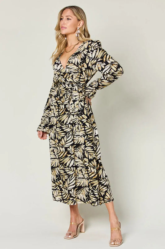 Double Take Full Size Tie Back Flounce Sleeve Dress