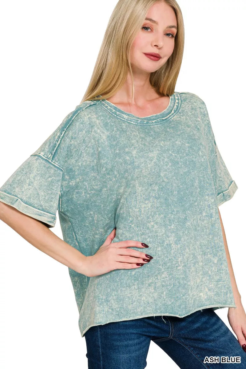 - Zenana French Terry Acid Washed T-Shirt