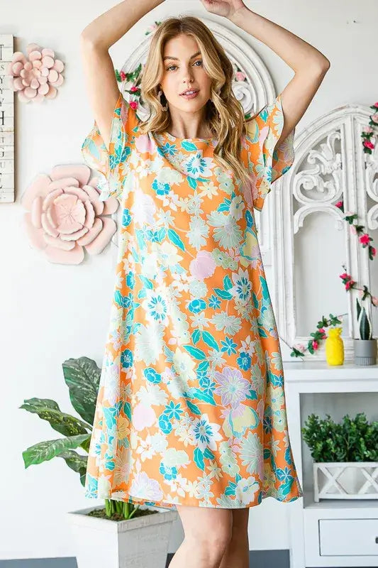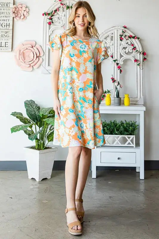 The Ruffled Short Sleeve Floral Mini Dress is a charming and feminine piece for your wardrobe. The ruffled sleeves add a sweet and elegant touch to the dress, while the floral print gives it a fresh and romantic look. This mini dress is perfect for a brunch date or a garden party, offering a cute and stylish outfit choice for a variety of occasions.