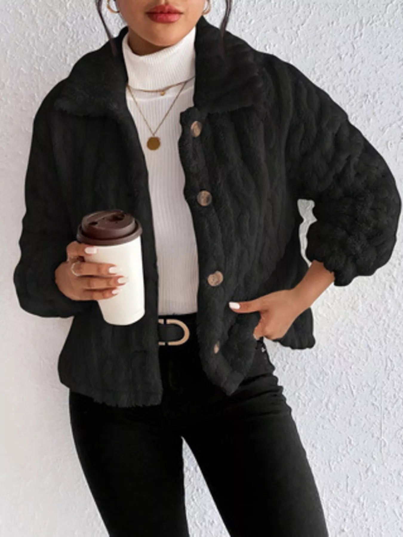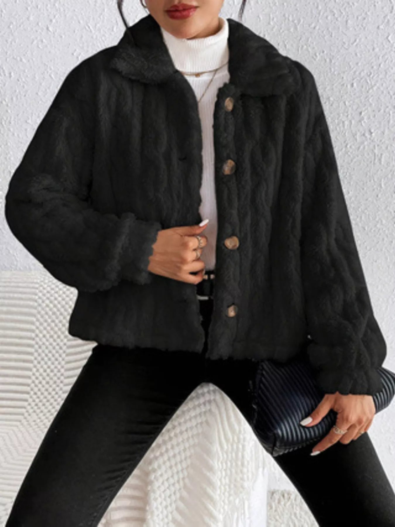 Cozy Textured Fleece Button-Up Outerwear