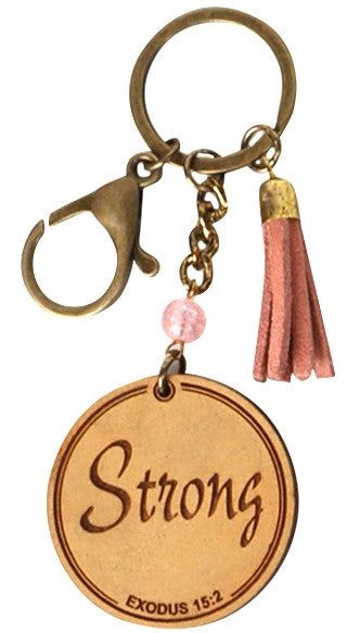 Affirmation Engraved Leather & Wood Keychain - Strong