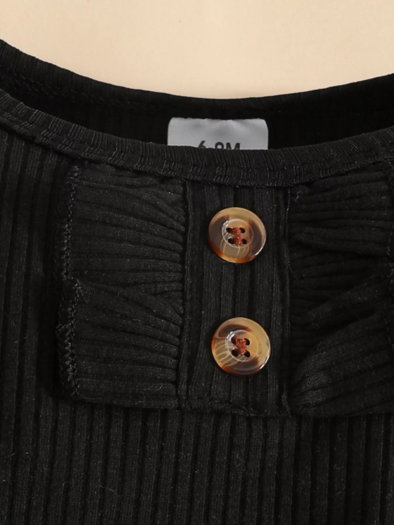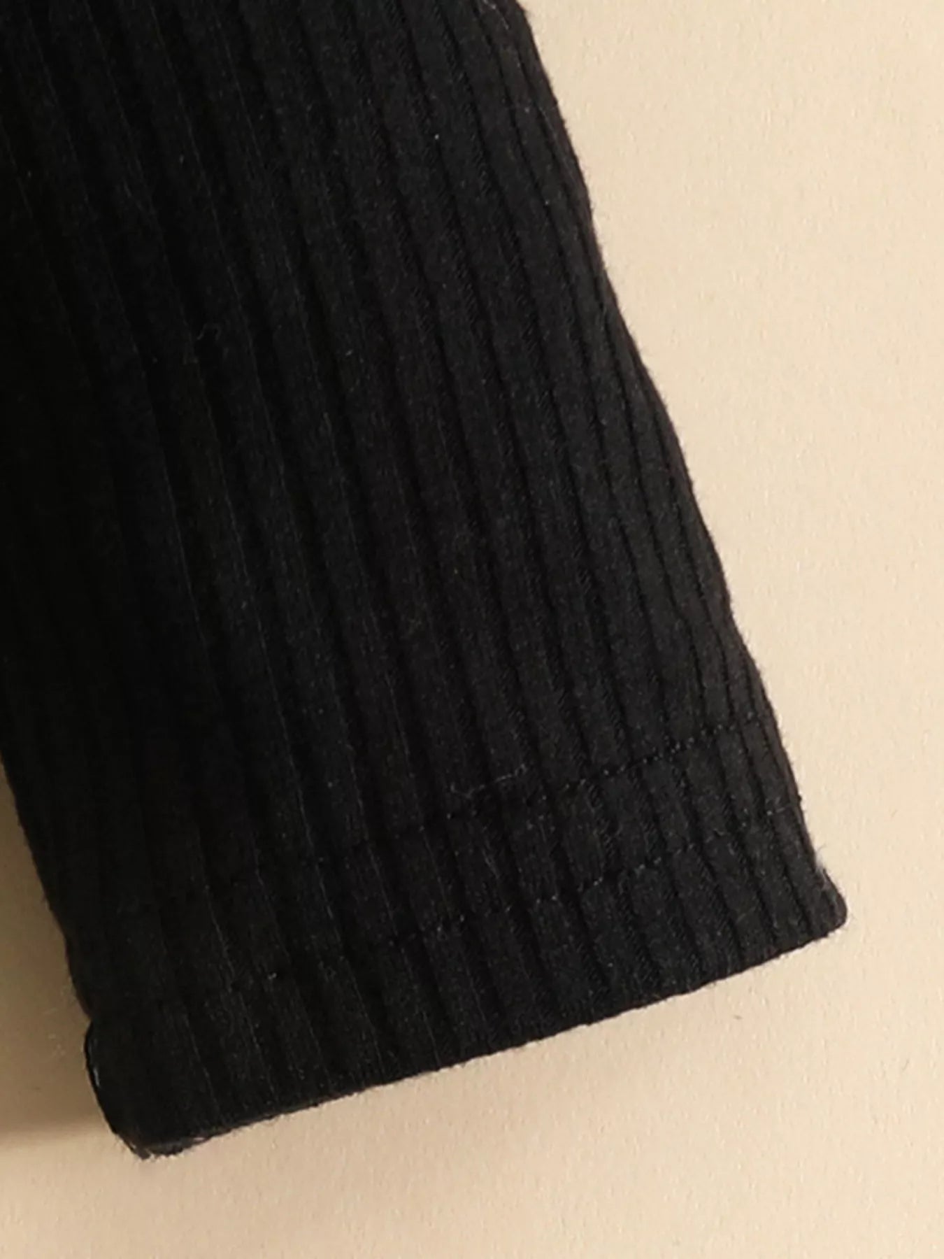 Children's Ribbed Knit Top and Bowknot Skirt Set with Headband