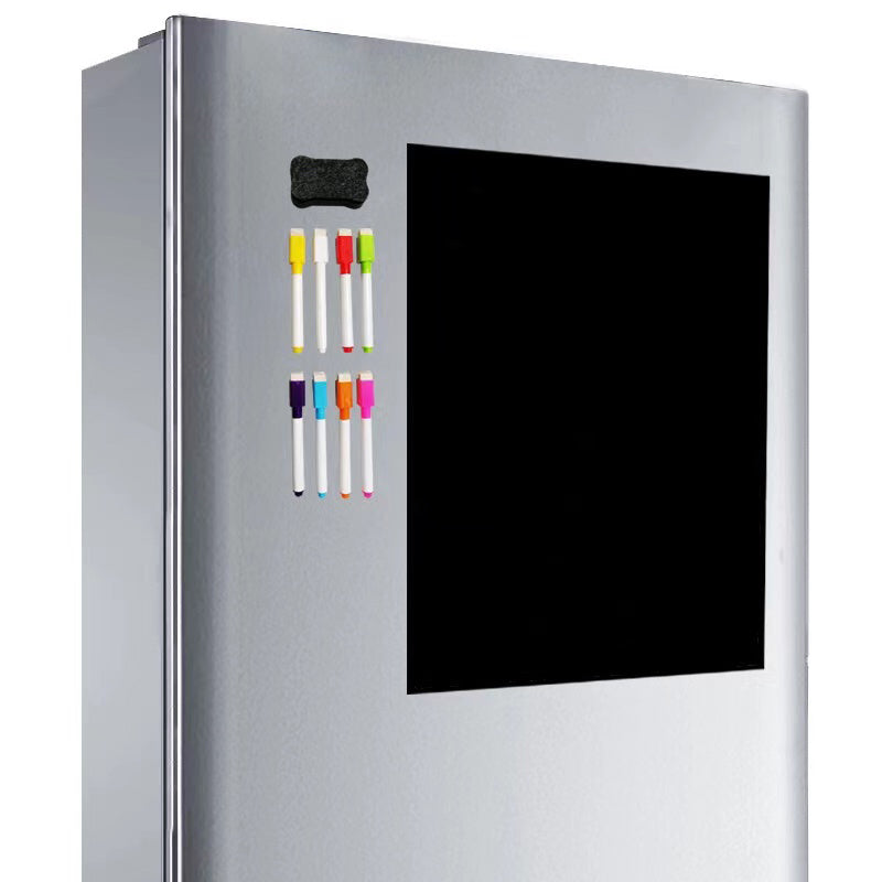 ALL-IN-ONE SET: Includes Black Magnetic Dry Erase Board, 8 Magnetic Neon Liquid Chalk Markers, and Magnetic Eraser