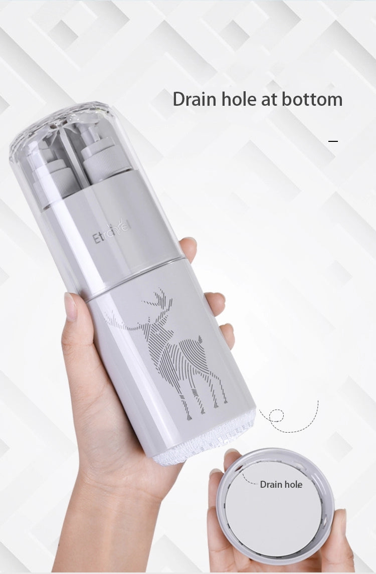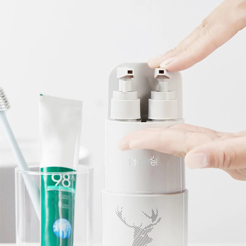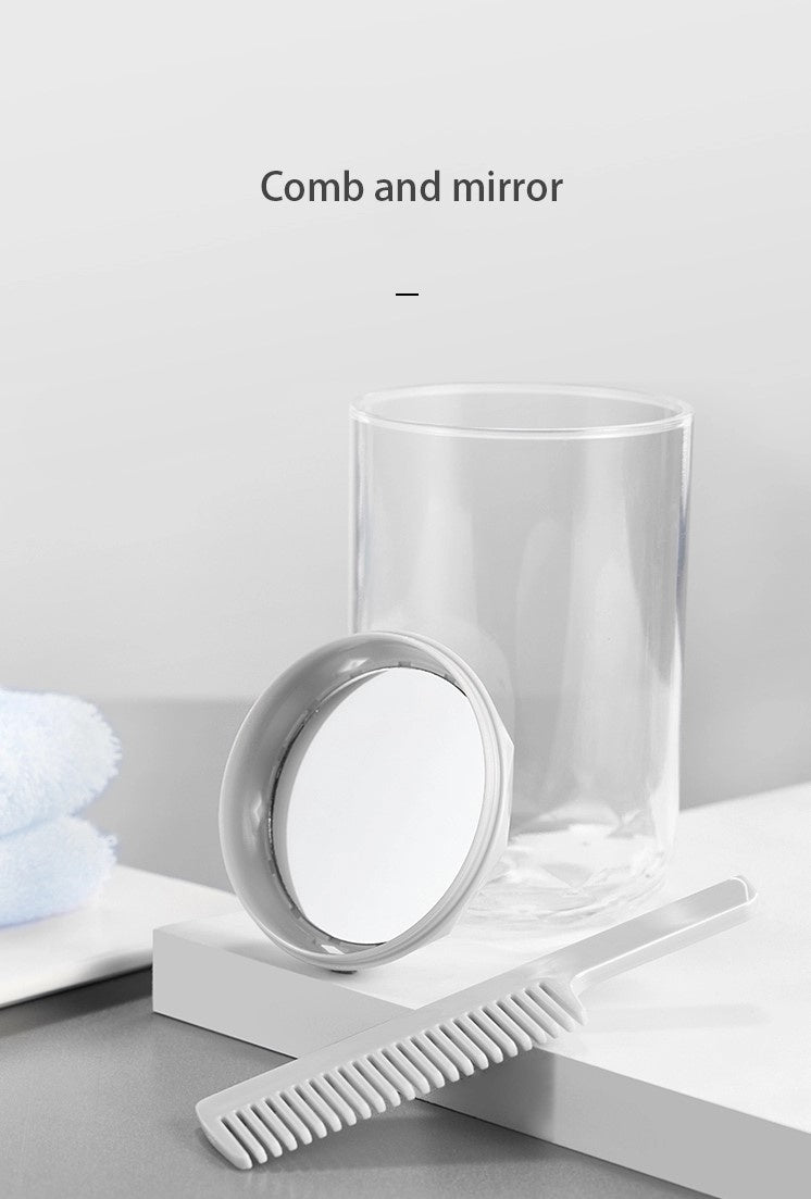 Fill the two dispenser bottles with your favorite lotions and cleansers, slide in your toothbrush and toothpaste in the partitioned storage, and pack your washcloth in the underneath compartment. With the lid doubling as a cup and the bottom doubling as a mirror and the enclosed comb, you are all set to refresh anywhere on the go!
