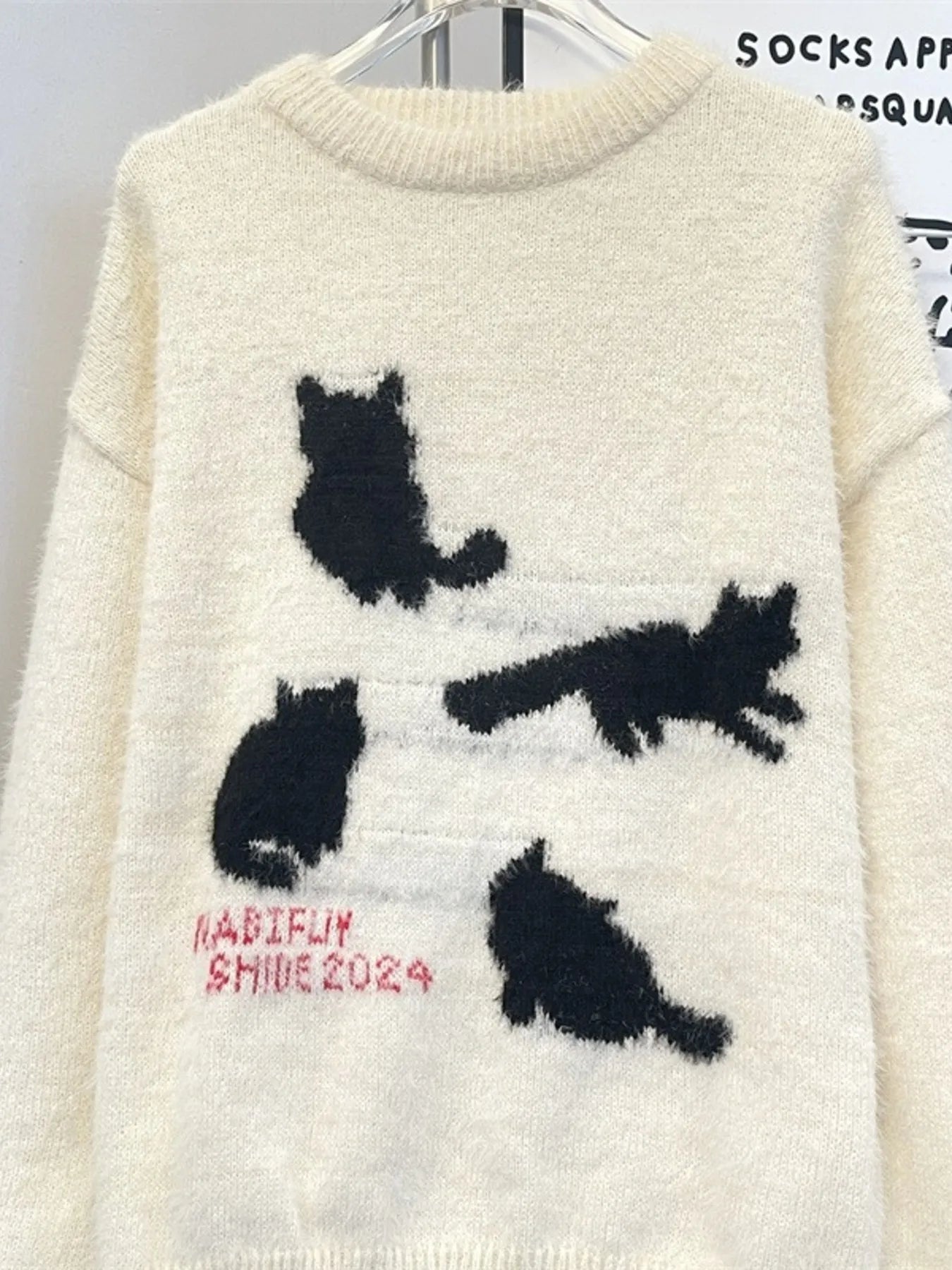 Men's Cute Cat Fuzzy Knit Pullover